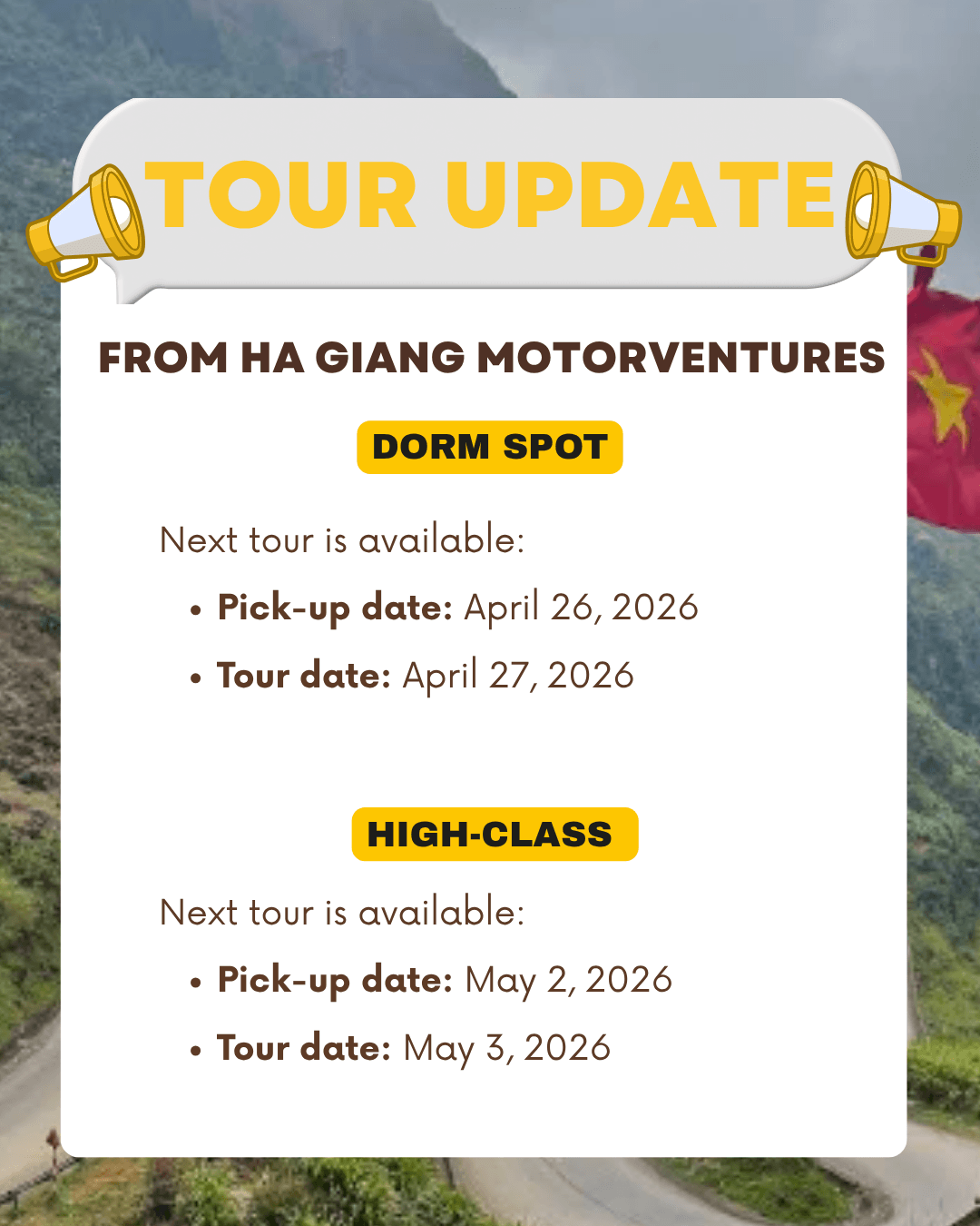Experience the raw beauty of Northern Vietnam with our 2-Day, 1-Night Ha Giang Loop Tour. Designed for travelers with limited time who don't want to miss the "Final Frontier" of Vietnam, this tour covers the most iconic mountain passes, ethnic cultures, and breathtaking viewpoints.